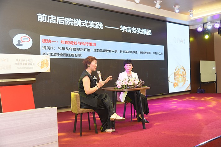 會議期間,芮旭濤副總介紹了“云連鎖招商”“數(shù)字化轉(zhuǎn)型”和“輕創(chuàng)業(yè)孵化”三大戰(zhàn)略路徑,這背后是總部七大賦能團隊的專業(yè)分工,是“三階段九步驟單店賦能模式”的實戰(zhàn)方法論,更是對“基于成交訂單、信息透明、公平合理利益分配”原則的堅守。琪雅連鎖公司董事張冠群女士則向全國A經(jīng)理描繪了琪雅功能性項目的戰(zhàn)略定位,以及如何構(gòu)建"前店后院+家居護理"的生態(tài)閉環(huán),解決“到店率下滑、客群老齡化、年輕需求斷層”的行業(yè)三大痛點。